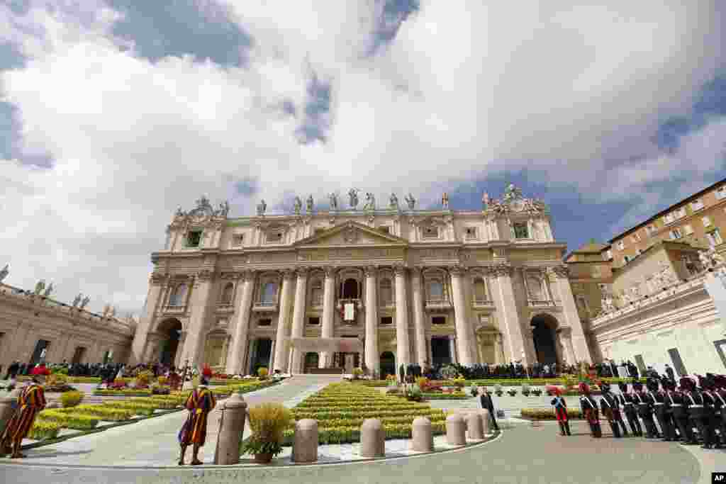 Pope Francis, greets the faithful during the Urbi and Orbi (to the city and to the world) blessing at the end of the Easter Mass in St. Peter's Square at the the Vatican, March 31, 2013.