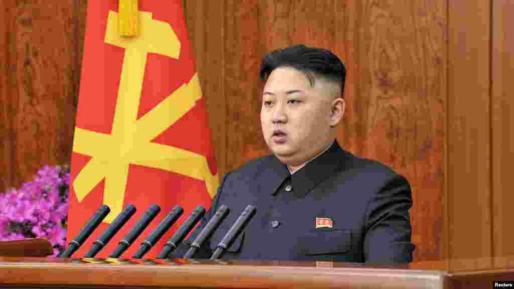 N Korean leader Kim Jong Un makes his first New Year's speech calling for his country to focus on economic improvements with the same urgency that scientists put into the launch of a long-range rocket last month, January 1, 2013.